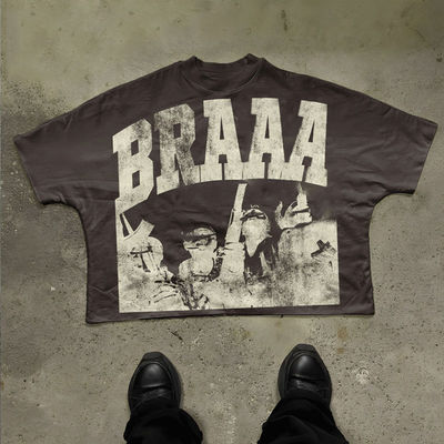 High Street Style Custom T-Shirt Ciężki bawełniany nadmiarowy graficzny pudełko wycięte dla mężczyzn